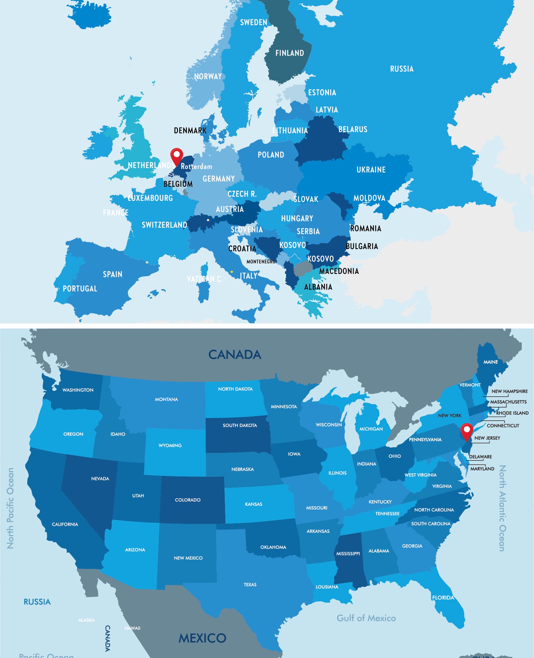 Contamos con una red de almacenes internacionales que nos permite ofrecer un suministro ágil y confiable a nuestros clientes en Norteamérica y Europa. Nuestras operaciones incluyen centros de distribución en Los Ángeles y Nueva Jersey para el mercado estadounidense, así como un almacén en Rotterdam, punto estratégico para abastecer a toda la Unión Europea. Esta infraestructura nos garantiza disponibilidad constante, tiempos de entrega optimizados y la capacidad de atender las necesidades logísticas de la industria global.